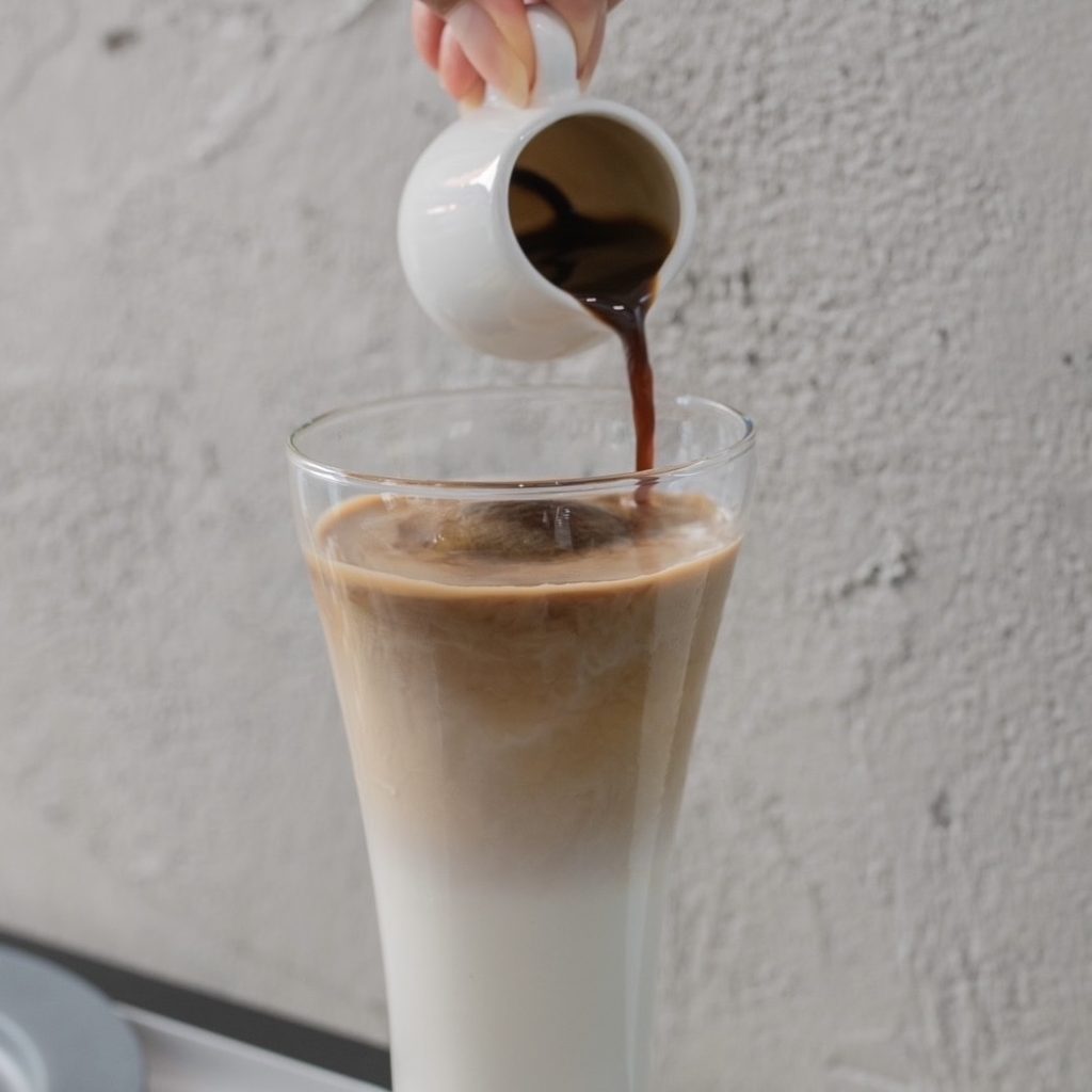 ドリンクメニューで人気な氷コーヒーラテは暖かいエスプレッソを注ぎ、溶かしながら飲むラテです!