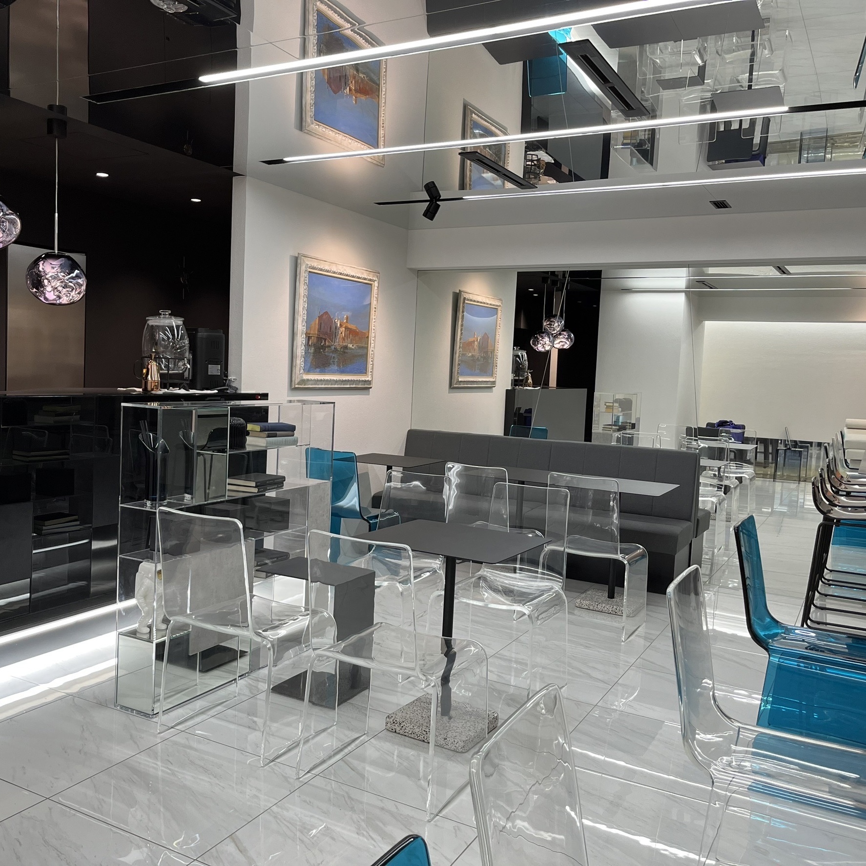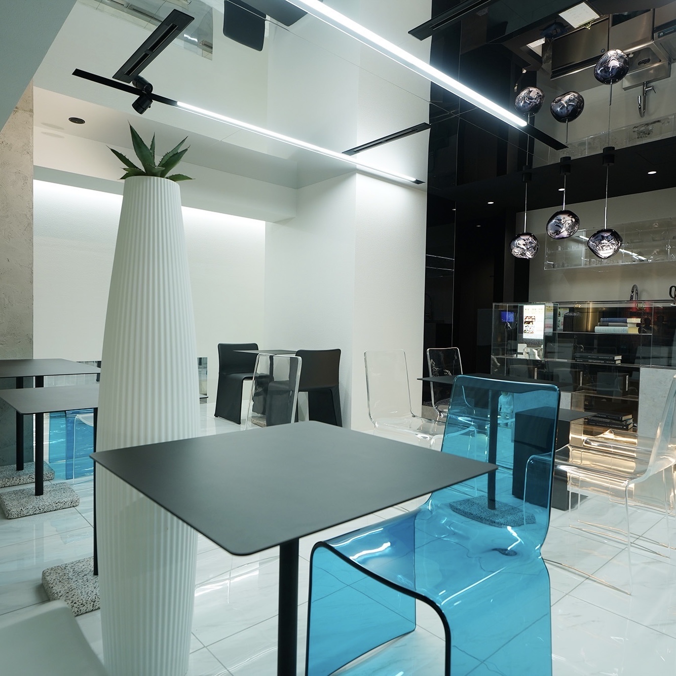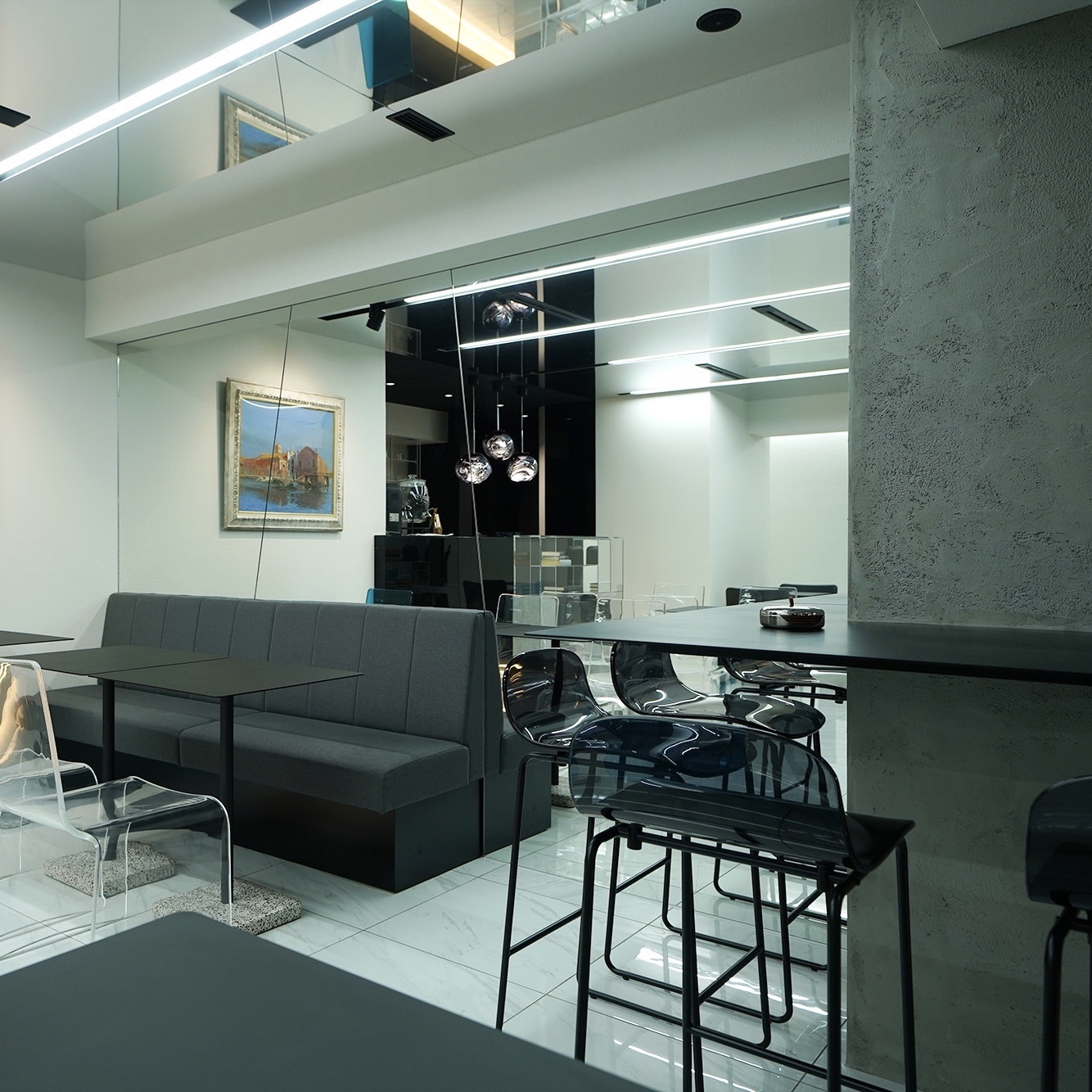 magnoliaではご来店いただいたお客様がリラックスしていただけるように、空間作りにもこだわっております。モノクロの配色をメインとしておりますが、ピンクや緑をいれることで落ち着いた空間となっております。ご希望のお席がある場合など、ご予約時お電話にてお伝えください。